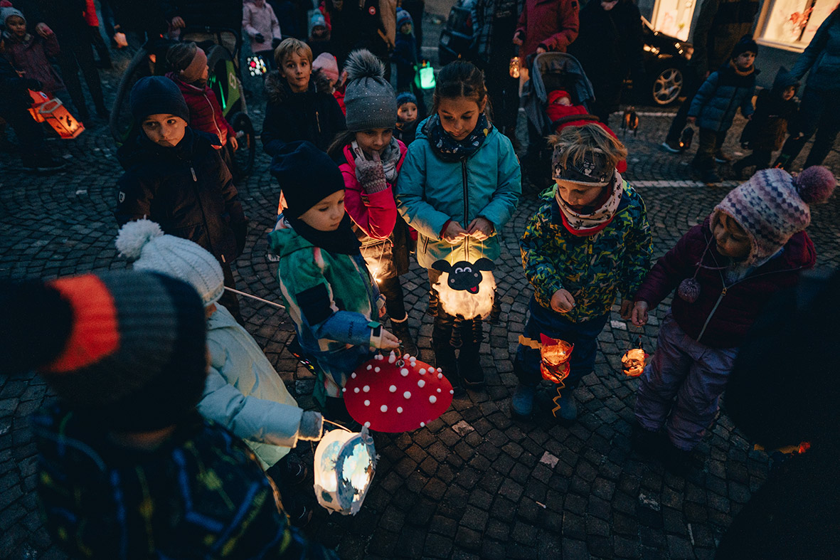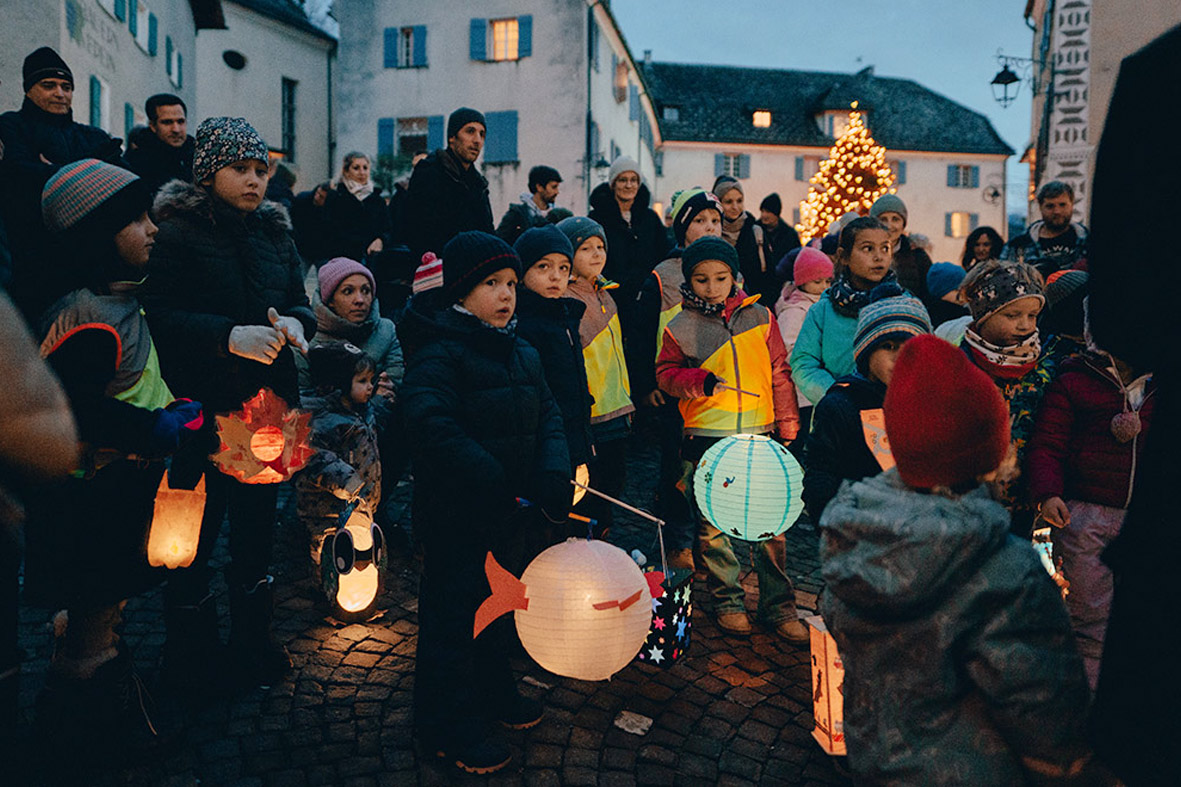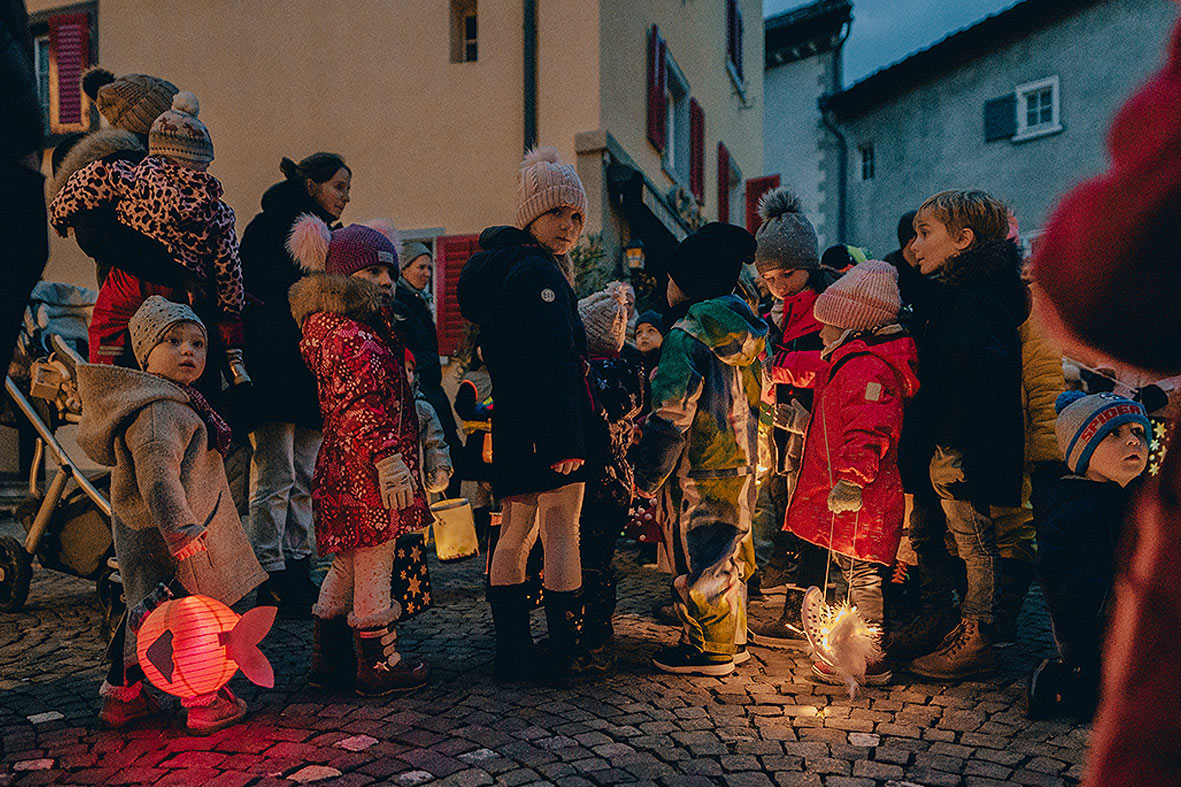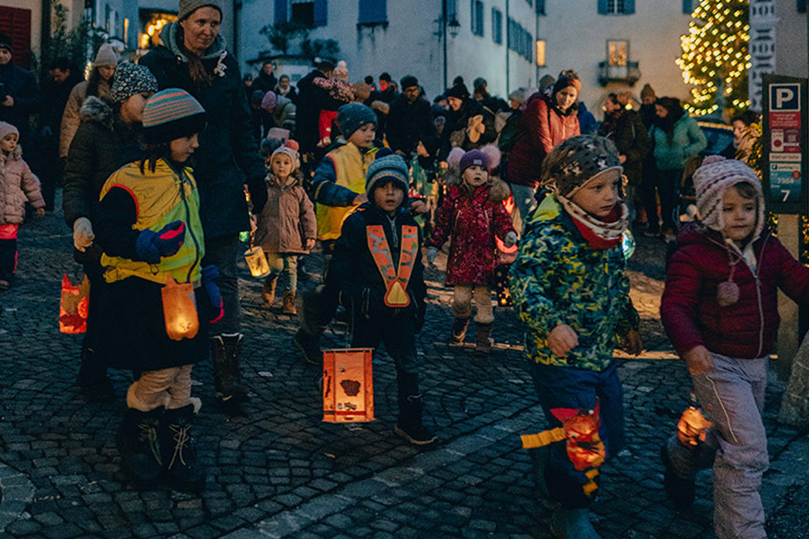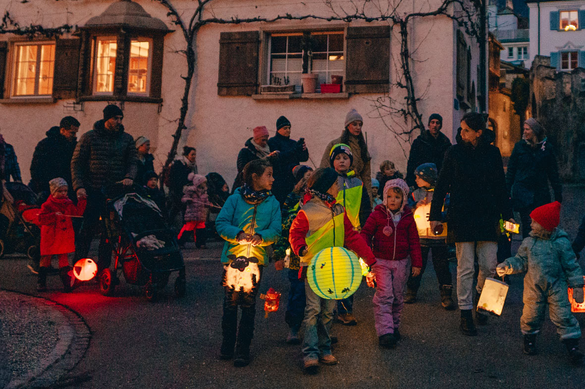 Zum Jahresabschluss findet der stimmungsvolle Laternliumzug statt. In der dunkleren Jahreszeit bringt dieser Anlass Licht und Wärme auf den Spielplatz.